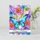 Cartes Pour Fêtes Annuelles Papillon bleu dans un champ de fleurs