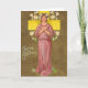 Cette jolie carte comporte une image vintage d'une femme devant une croix, entourée par des lis de Pâques. Le texte indique des "salutations de Pâques".