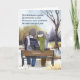 Ce couple de personnes âgées amoureuses regarde la neige et la belle campagne sur cette carte de Noël tendre pour votre partenaire de vie qui présente deux hommes à la peau brune et aux cheveux gris et blancs.