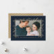 Cette carte de vacances photo design présente un feuillage délicat en parties scintillant d'or imitation, encadrant votre photo 4x6, sur un arrière - plan bleu marine foncé.