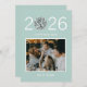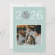 Ce Carte photo du Nouvel An présente une seule photo encadrée dans un arrière - plan blanc massif et 2026 en grand nombre dans une police sans serif moderne avec le zéro transformé en une boule de disco.