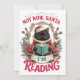 Un design de vacances de Noël amusant et joyeux met en vedette un chat noir vêtu d'une cape rouge et d'un pull à col roulé blanc, absorbé dans la lecture d'un livre. Le chat est assis devant des branches de fougère et de houx, sous une arche dorée ornée de cloches. Le texte coloré indique : « Pas maintenant, Père Noël, je lis ». Ce design est disponible sur divers produits qui font des cadeaux parfaits pour les amateurs de livres.