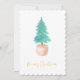 Pastel Pink Farmhouse Check Poted Christmas Tree Carte de vacances. Ferme, cottage et style de Noël abîmé. Espace vide sur le dos pour un accueil personnalisé.