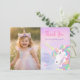 Pastel rainbow unicorn artwork with watercolor wash background and delicate cloud illustration. This whimsical fairytale layout features elegant script typography and dreamy pastel hues, perfect for a magical girl birthday party celebration.