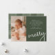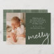 Une carte de Noël rustique et moderne avec un script de joyeux blanc élégant et des tons de vert festif avec un motif plaid patchwork au dos de la carte. Personnalisez la carte de voeux classique avec votre photo de famille personnalisée !