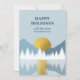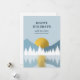 Un beau design présentant une forêt enneigée, un paysage montagneux et un coucher ou lever de soleil doré se reflétant dans l'eau. Les tons de couleur comprennent des tons neutres tels que le bleu, le blanc et l'or. Un design rustique idéal pour la décoration hivernale de la maison et la saison festive des fêtes.