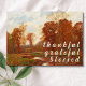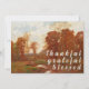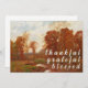 Une carte de Thanksgiving rustique avec le paysage d'automne de William Merritt Post. La scène révèle une berge bordée de grands arbres d'automne, leurs réflexions dansant dans l'eau calme. La composition saisit la beauté tranquille des jours d’or de l’automne. Avec Grateful Blessed sur le devant, la carte apporte un message chaleureux de gratitude. Ajoutez votre note personnelle à l'intérieur.