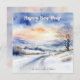 Souhaitez à vos amis et à votre famille une Bonne année avec cette carte personnalisée élégante. La carte est illustrée d'une belle scène de neige à la campagne, avec des collines et un coucher de soleil, dans un style aquarelle. Personnalisez la carte avec votre (vos) nom(s), ou autre texte, pour une touche finale individuelle.