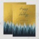 Un beau design mettant en valeur des arbres dans une forêt et un ciel doré. Les tons de couleur comprennent des tons de bleu neutre et de l'or. Un design rustique idéal pour la saison des fêtes.