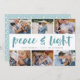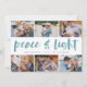 Share six favorite photos with our bright and festive Hanukkah holiday card. "Peace and Light" appears in the center in hand lettered brush typography, with your holiday greeting, names, and the year beneath.