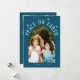Elégante carte de vacances avec un texte qui dit "paix sur terre" avec des étoiles au-dessus de votre photo de cadre voûté. Ajoutez une autre photo au dos avec votre message. L'Arrière - plan est turquoise.