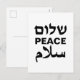 Cartes Pour Fêtes Annuelles Peace Shalom Salaam blanc noir typographie