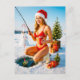 Cartes Pour Fêtes Annuelles Pêche de la fille à la broche en Bikini rouge