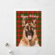 Carte de vacances avec illustration à l'aquarelle de Berger Allemand sur fond écossais vert et rouge festif et vœux de vacances personnalisables.