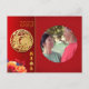 Conception de pivoines chinoises + Papier Rabbit doré (image imprimée) + Joyeux Nouvel An en chinois + personnalisable 2023 et petit "Bonne Année" sur un arrière - plan rouge + cadre photo décoré pour votre propre photo en face. Vous pouvez facilement changer de photo en cliquant sur le bouton personnaliser. Conception sur carte postale horizontale. Carte à plat carré et carte de voeux correspondant. Parfait pour une famille Nouvel An chinois du lapin 2023.