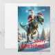 Carte de vacances de Père Noël à cheval sur un dinosaure