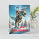 Cartes Pour Fêtes Annuelles Père Noël à cheval sur un dinosaure