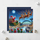 Le Père Noël et ses rennes planent au-dessus de la rivière Tyne dans leur traîneau, avec le Quayside magnifiquement illuminé en dessous. Ses lutins agitent les bras avec excitation tout en pointant vers le stade de Newcastle United au loin.