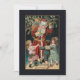 Jolly rouge Père Noël vintage tenant son sac de cadeaux et saint avec trois enfants heureux dansant autour de lui avec un faux orteil au-dessus et des reflets d'or. La couleur Arrière - plan est personnalisable. Le dos est doté de graphismes complémentaires personnalisés uniques avec des champs de texte modifiables.