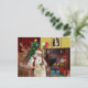 Père Noël à la maison avec ses Grands Pyrénées, se relaxant devant un feu douillet avant la grande nuit. Remarquez Mona Lisa sur le manteau tenant le même chien.