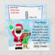 Cette année semble un peu différente puisque la pandémie a frappé le monde,, Voici donc une carte postale souvenir pour se rappeler l'année folle 2020. Jolies flocons de neige, avec un Père Noël des fêtes festif adorable et un elfe en masques lettre personnalisée du Père Noël ethnique sur le devant.