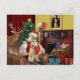 Père Noël à la maison avec son Wire Fox Terrier, se relaxer devant le feu avant le grand jour. Remarquez Mona Lisa sur le manteau tenant le même chien.