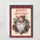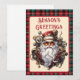 Une carte de vacances unique avec un père Noël Steampunk de style vintage portant des lunettes de hipster rétro cool sur un fond tartan festif. Personnalisez votre message avec un texte personnalisable dans une police vintage. Cette conception d'art numérique a été créée avec l'aide d'un logiciel d'IA.