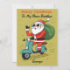 Père Noël sur un scooter avec des lunettes de soleil et des cadeaux de Noël Carte de vœux festive : Cette carte de vœux festive représente le Père Noël filant à scooter, avec des lunettes de soleil, et apportant la joie des fêtes avec un sac plein de cadeaux. C'est une façon amusante et fantaisiste de répandre la joie et les vœux chaleureux de cette période de Noël.
