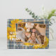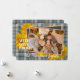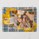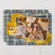 Unique, classe, tendance, jolie et décorative carte de vacances Thanksgiving. Mignonne AVEC AMOUR DU texte et de l'espace pour customiser ou personnaliser avec une photo et les noms (ou nom de famille) de votre choix. Avec mignonne classique de la chute jaune chaude Fleurs citrouilles sur un bleu turquoise, ocre moutarde marron et gris couleur rustique de la ferme inspiré plaid tartan motif design arrière - plan. Et une saison personnalisable saluant poème sur le dos de la carte.