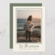 Partagez la joie de la saison avec notre carte de Noël personnalisée élégante et stylée de couleur vert sauge. Dotée d'un design moderne et minimaliste classe, cette carte est parfaite pour les familles qui souhaitent envoyer des vœux de fête avec une touche de sophistication. La mise en page épurée et minimaliste en vert sauge met en valeur un beau portrait de famille, faisant de votre photo la pièce maîtresse de ce vœu de Noël élégant. Avec une mise en page simple à une photo et une typographie script raffinée, cette carte allie le style contemporain à l'élégance intemporelle.