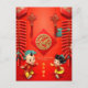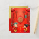 Festive salutation traditionnelle chinoise avec pétards, noeuds chanceux et nuages auspicieux + coupé en papier du Cheval d'or + deux enfants mignons pour souhaiter Bonne Année. Conception sur carte postale de vacances verticale + textes pour customiser à l'arrière. Disponible en carte de voeux verticale. Enveloppe rouge pour les enfants, carte carré, autocollant et plus bientôt... Parfait pour le Nouvel An Chinois du Cheval 2026.