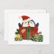 Un petit manchot heureux avec un chapeau de Noël se réjouit des cadeaux