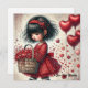 Cartes Pour Fêtes Annuelles Petite fille tenant un panier de cœurs pailletés r