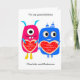 Une carte de la Saint Valentin pour vos petits-enfants. La carte de ce mignon monstre Valentine comporte deux mignons monstres et le devant peut être personnalisé avec le nom de votre petit-enfant.