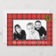 Carte de vacances photo à carreaux rouges élégante qui peut être personnalisée. Photo sur le devant et vœux au dos.