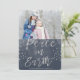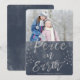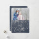 Carte de Noël photo à l'aquarelle bleu et argent Paix sur Terre. L'image et le nom de famille peuvent être remplacés sur la carte de Noël à l'aquarelle Paix sur Terre indigo et argent.