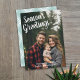Design moderne avec motif de plaid rustique à l'arrière. Cela fonctionne mieux avec une photo verticale - centrée sur le sujet. La police de style calligraphie en fait un choix moderne et fantaisiste pour une carte photo de Noël. L'arrière comprend une motif de couleur verte vif. Crédit photo : Photographie © Storytree Studios, Stanford, CA