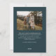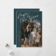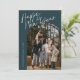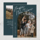 La photo Arc Joyeux Nouvel An Écriture Moderne Bleue 2 présente une écriture amusante et moderne sur une photo pleine page, ainsi qu'une deuxième photo au verso et un espace pour votre message.