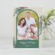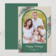 Une élégante carte de vœux de Noël présentant une photo arquée tendance. Le design est accentué de verdure hivernale et de baies ainsi que d'une couleur vert foncé.