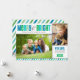 Des couleurs et des rayures festives accentuent deux (2) photos sur cette carte de Noël photo personnalisée élégante. Des nuances audacieuses et fraîches de bleu, d'aqua / turquoise et de vert associées à des accents de gris étain chaud.