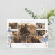 A charming watercolor Christmas photo card featuring a blue nutcracker, graceful ballerina, and snow globe manor illustration. The elegant blue gingham accents and soft pastel tones create a refined yet whimsical design — perfect for sharing family holiday memories with classic Christmas style.