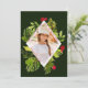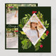 Cette élégante carte de vœux présente un cadre photo en forme de diamant saisissant, entouré d'illustrations botaniques aquarelles vibrantes de verdure luxuriante et de baies rouges festives. Sur un fond vert forêt profond, le design dégage un charme moderne et sophistiqué.