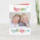 Une carte de vœux de vacances photo fantaisiste avec un message coloré de joyeuses fêtes sur le devant pour une ambiance amusante, légère et festive. L'intérieur comporte une autre zone pour une grande photo client et une couleur de fond coordonnée avec une zone pour un message personnalisé.