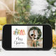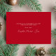 Carte de vacances moderne avec votre photo, aquarelles de pins abstraits en vert sauge muet, rouge, or et orange brûlé et "Joyeux Noël" dans un script élégant. Au verso, ajoutez un accueil saisonnier personnalisé et vos noms dans un script blanc signature sur un arrière - plan rouge.