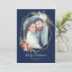 Cette élégante carte de vacances présente un joli cadre géométrique doré orné de bouquets floraux de Noël festifs, le tout sur un joli fond bleu marine. Les bouquets sont composés de roses, de poinsettias, de pommes de pin, de baies et de branches de pin. Personnalisez avec un message de vacances personnalisé, vos noms et votre photo préférée. Le dos de la carte est d'une belle teinte rouge canneberge, mais peut être personnalisé à la couleur de votre choix !