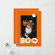 Souhaitez un joyeux Halloween à vos amis et à votre famille avec une photo de votre chat ! Ce design d'Halloween adorable met en valeur la photo de votre animal avec le mot "BOO" avec des yeux effrayés regardant un fantôme qui balance une araignée. Personnalisez avec votre propre texte au verso dans le modèle ou modifiez davantage (par exemple, changez la couleur de fond, déplacez les éléments, changez la police, la taille, etc.) dans l'outil de conception.