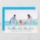 De Noël à la plage à vos vacances côtières préférées, cette carte de vœux de vacances "Dashing thru the sand" est une façon amusante de souhaiter à vos amis et à votre famille un Joyeux Noël tropical ! Elle présente votre photo de plage préférée, un message personnalisé et un nom. Le verso de la carte présente un motif d'étoiles de mer sur un fond bleu aqua. Une carte côtière chic parfaite pour les vacances !