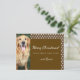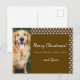 Personnalisez votre salutation de Noël avec cette carte postale personnalisée qui contient une photo de votre meilleur ami et les noms des membres de votre famille. Cette carte personnalisée a un arrière - plan brun foncé chaleureux avec des côtés de pois blancs.