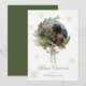 Célébrez dans le style avec cette carte de vacances fantaisiste avec une couronne d'aquarelle avec des cônes de pin et la verdure d'hiver qui sert de cadre photo magnifique pour votre photo préférée de l'année. Ornée d'un joli petit arc et entourée de délicats flocons de neige, cette carte de voeux de Noël en couronne apportera un sourire à tous ceux qui la reçoivent.