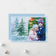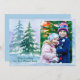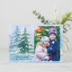 Belle scène de neige aquarelée avec des arbres forestiers recouverts de neige accentue votre photo de portrait de famille préférée. Monogramme avec votre propre salutation de vacances pour célébrer tout Joyeux.
